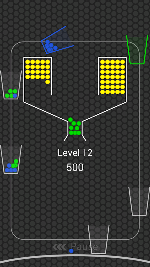 Tap . get 100 balls cups. fill moving cups balls. Filled cups balls pot. Empty cups unhooked from chain. ends when all balls. speeds cups. levels cups color. Colored cups produces higher value colored balls. game, points .