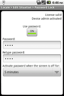 Android Market App: plug-in automatically enable/disable 's unlock password based location, time etc., disable , but enable default.
