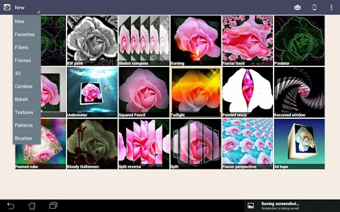 * Categories: Filters, 3D, Combos, Bokeh, Frames, Textures,