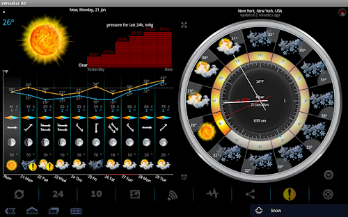 eWeather HD most informative Android application about : Current weather forecasts from different weather providers, NOAA weather alerts, latest earthquakes, live radar, geomagnetic storm forecast, pressure change indicator, wind calendar, METAR.