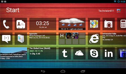 ✔ Live tiles : Gmail, twitter, facebook, calendar, news, weather, stock market etc