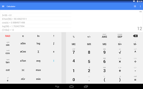 Android Market App: One Calculator fully featured scientific calculator simple interface, perfectly integrated Material Design.