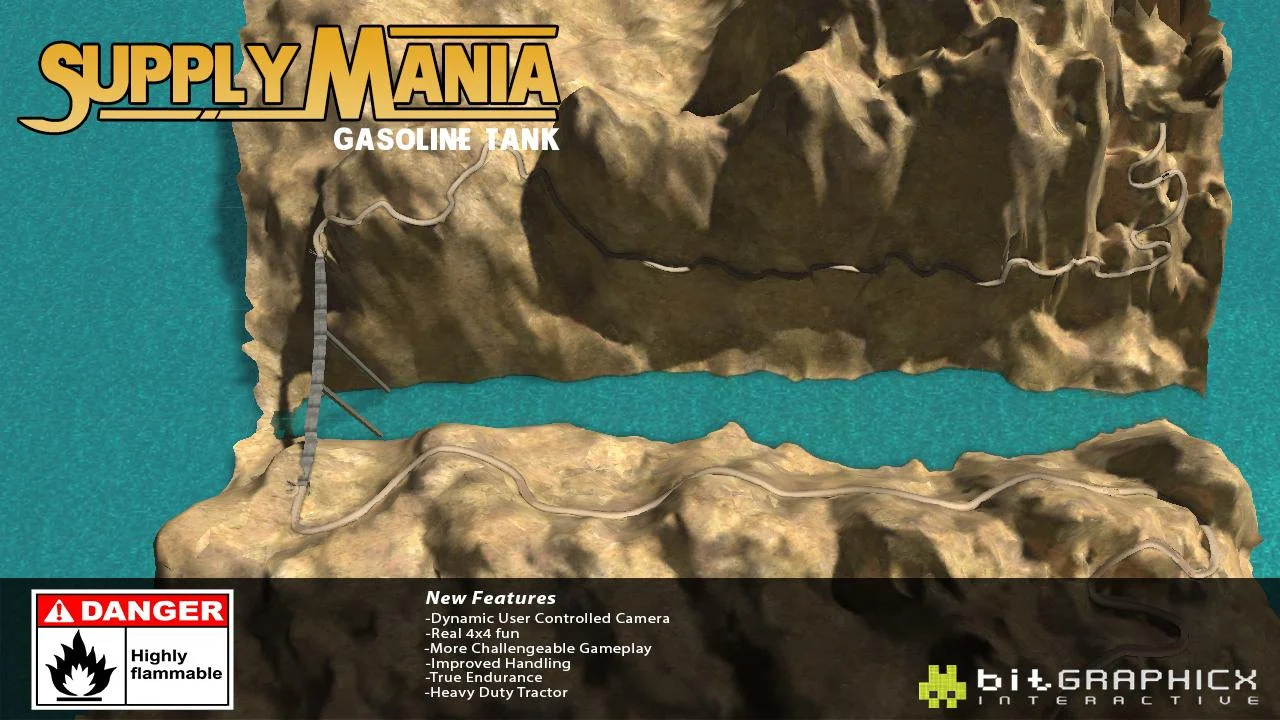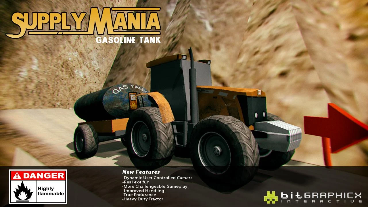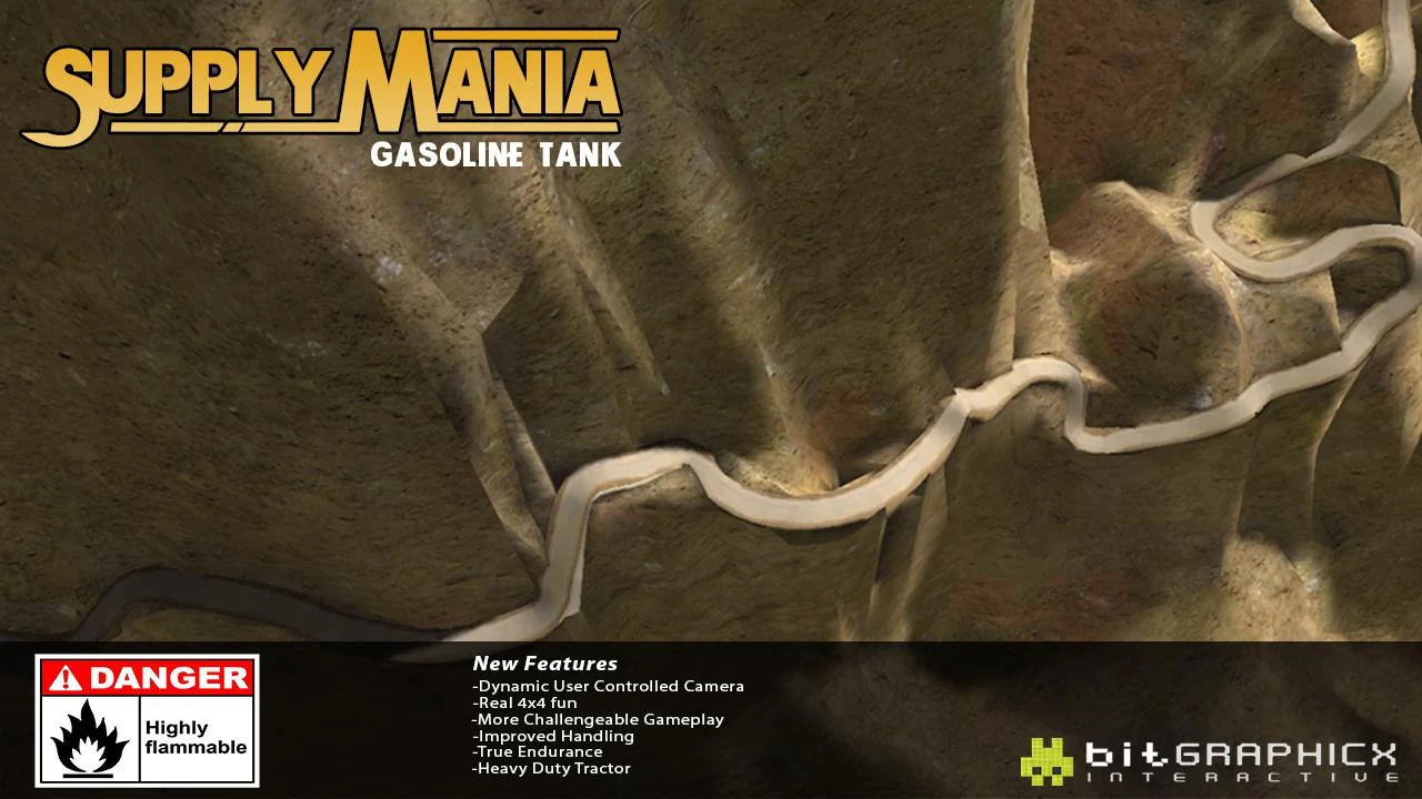 Supply Mania delivering products places under any kind . Supply Mania doesn't care about any weather conditions, hardships paths. particular title . Player deliver a Gasoline Tank cliff.